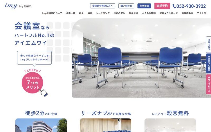 長くご愛顧いただいておりますimy会議室様のフルリニューアル制作をさせていただきました。